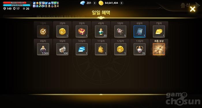 일일 혜택 3일차와 14일차에 강력한 보상이 기다리고 있다. = 게임조선 촬영