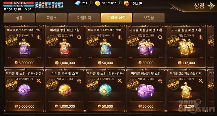상점 메뉴에 새롭게 추가된 미라클 상점 = 게임조선 촬영