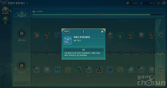패스 기본 보상에선 마법서, 고급 보상에선 보스 장신구를 얻을 수 있다 = 게임조선 촬영