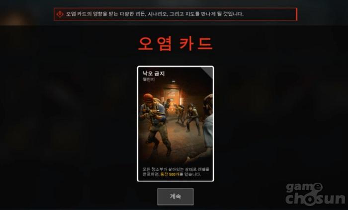 그리고 차별성을 두기 위해 준비한 두 번째는 랜덤성의 부여다. 백 4 블러드는 '카드 시스템'이 존재하는데, 이를 통해서 게임에 다양한 변수를 만들어낸다. 카드는 커럽션과 액티브로 나뉘며 커럽션은 매 라운드마다 적용되는 페널티로, 게임의 난이도를 증가시키게 된다. 다음으로 액티브 카드는 게임 시작 전 덱을 구성해 뽑을 수 있으며, 플레이어에게 각종 이로운 효과를 준다. 게임 중에도 각종 루트를 통해 획득할 수 있다.
