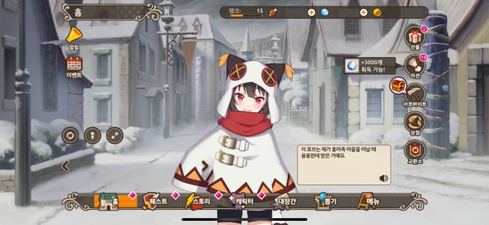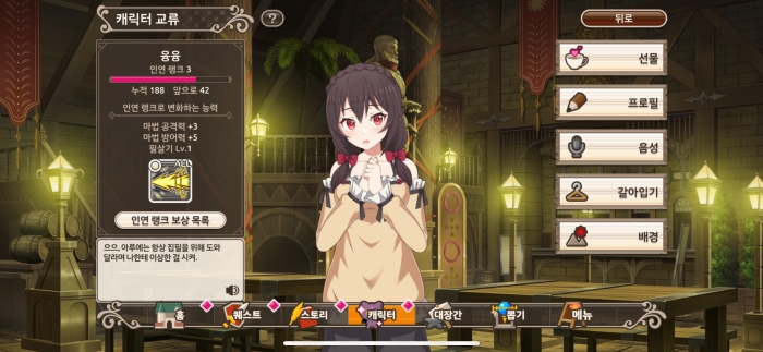 또한 노멀 퀘스트 클리어에 따라 메인 스토리가 개방하고 감상할 수 있다.