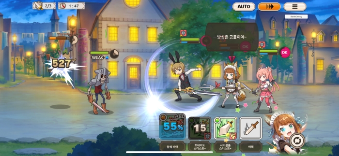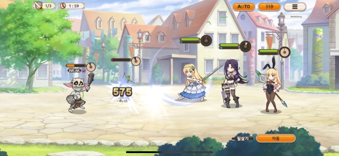 코노스바 모바일에서는 수동 전투와 자동 전투를 지원한다.