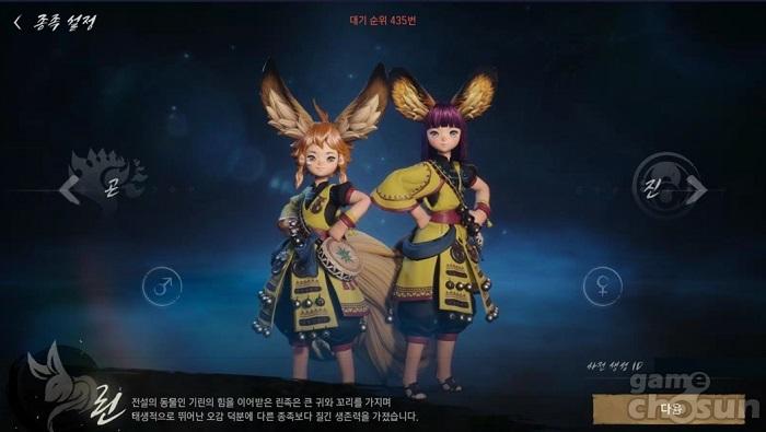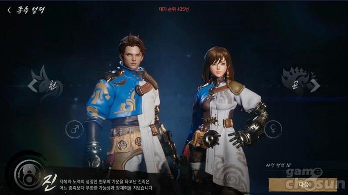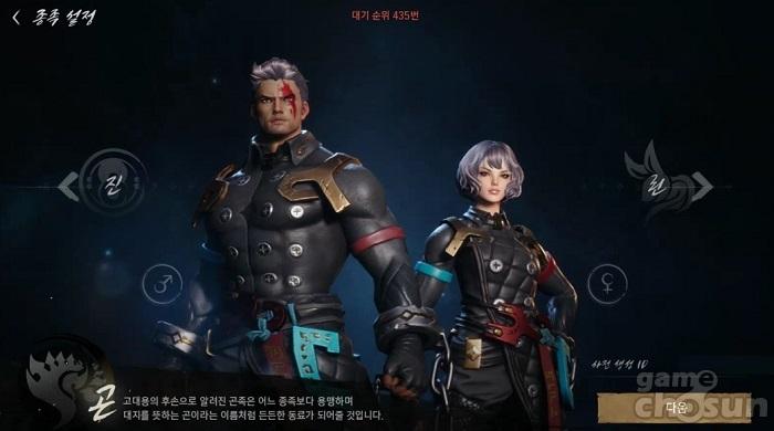 가장 처음으로 이용자를 반기는 것은 캐릭터의 종족 선택이다. 전작과 달리 클래스가 고정돼 있지 않기 때문에, 별도의 클래스 선택이 없으며 바로 캐릭터 종족 선택이 등장했다. 등장 종족은 '진', '곤', '린'이며, 모든 종족에서 남녀 성별을 고를 수 있다.