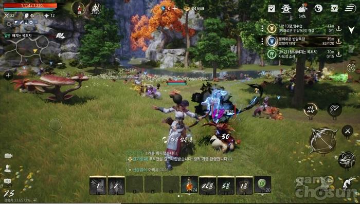 전체적인 플레이 방식은 모바일 플랫폼에 맞춰 설계돼 있으며, 당연히 자동 이동 및 자동 전투 등의 기능도 지원하고 있다. 또, 경공의 경우에는 우측 최하단에 키를 배치해 언제든 자유롭게 경공을 펼칠 수 있도록 했다.
