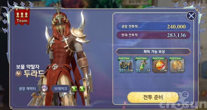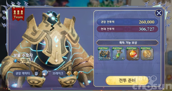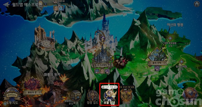 보물 탐색은 챕터6 에피소드 30 완료 후 월드맵 '보물 탐색' 메뉴에서 진행 가능 = 게임조선 촬영