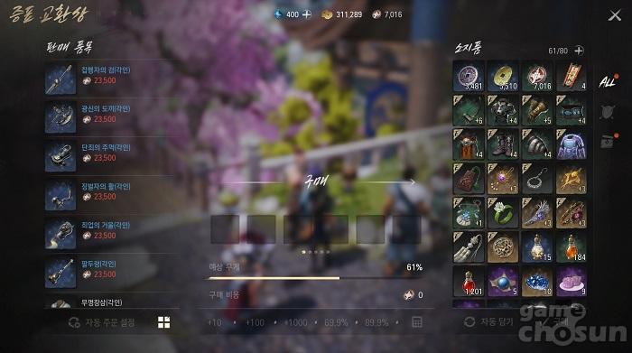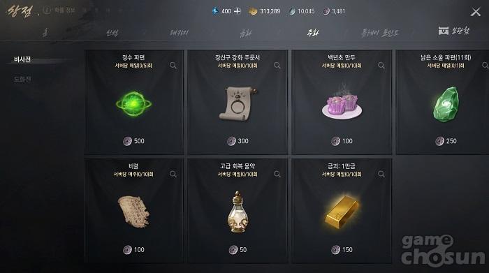 이외에도 상점에서 무공과 관련된 아이템 '정수 파편'과 '비결' 뿐만 아니라 '장신구 강화 주문서', '고급 회복 물약', '백년초 만두', '낡은 소울 파편', '금괴: 1만금' 등의 아이템으로 교환된다.