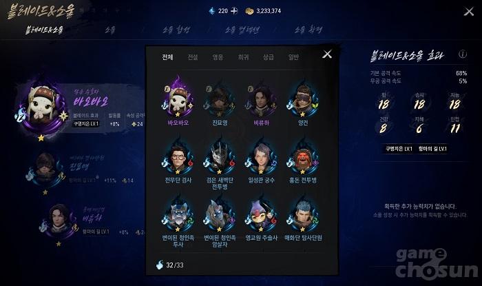 따라서 소울을 통해서 추가 스탯으로 챙기지 못한 건강과 지혜, 민첩 능력치를 챙기는 것이 가능하며 자신이 보유한 소울을 비교하면서 주력 능력치와 더불어 부가 능력치에 동시 투자할 수 있다.