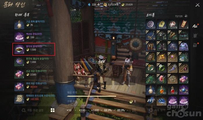 한편, 추가 스탯을 통해 투자한 능력치는 문파 장원의 '문파 상인' NPC가 판매하는 '망각의 영약'을 사용하면 초기화시킬 수 있다. 망각의 영약은 개당 1,500 도화전에 구입할 수 있다.