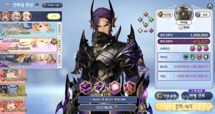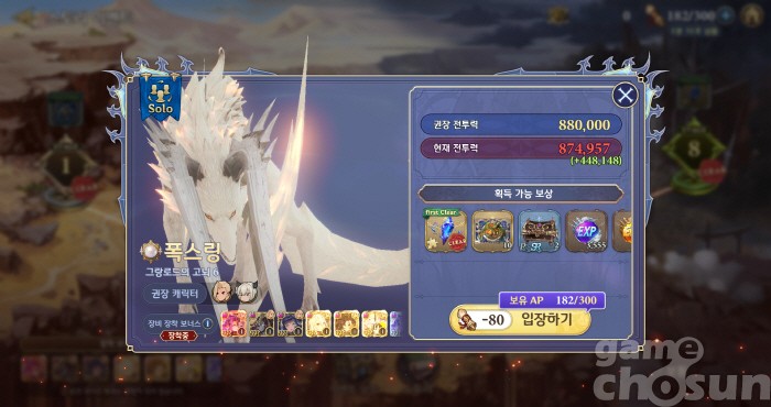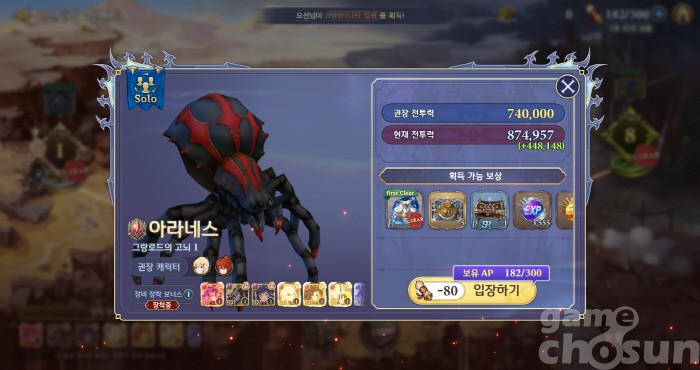 카르시온의 스토리인 만큼 같은 어둠속성 캐릭터인 카르트의 그랑웨폰이 보너스를 준다 = 게임조선 촬영