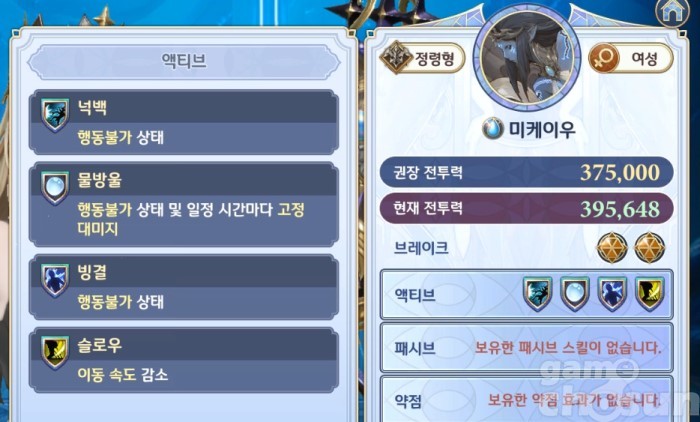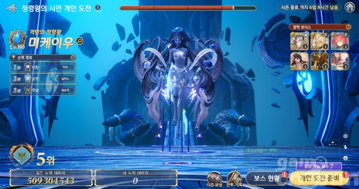 버프와 공격을 번갈아가며 사용하는 물의 정령왕 미케이우 = 게임조선 촬영