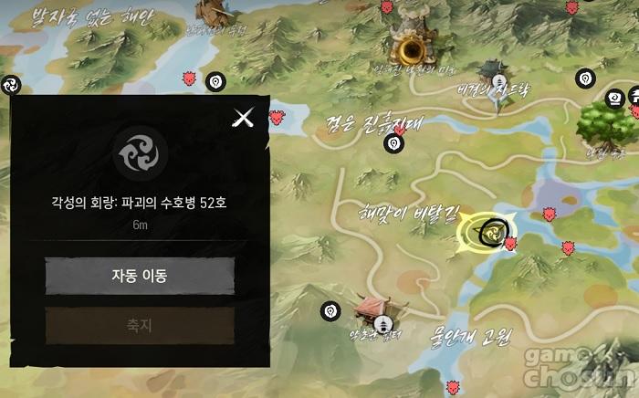 각성의 회랑: 파괴의 수호병 52호는 해맞이 비탈길에 위치해 있으며, 필드 네임드 몬스터 '청야묘'를 찾아가면 쉽게 발견할 수 있다.
