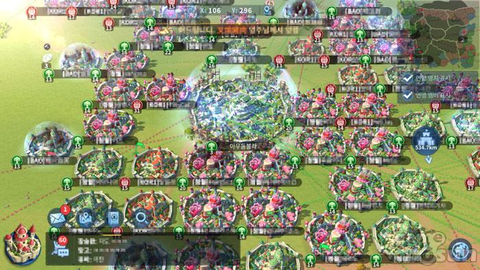 자신의 영지를 빠르게 발전시켜나가야만 다른 이용자와의 경쟁에서 우위를 점할 수 있다. 영지 내에는 방어 건물과 자원 채집 건물, 연구 건물, 병사 훈련 및 치료 건물, 부가 기능 건물 등 다양한 형태의 건물이 등장하는데, 각 건물을 빠르게 건설하고 단계를 높여나가는 것이 관건이다.