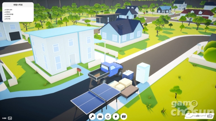 게임을 시작하면 지도와 옮겨야 할 물건이 주어진다. 대체 왜 이 동네 사람들은 이삿짐을 고작 차 한 대로 옮기려고 하는 것인지 의문이 들지만 이런 유의 게임이 그렇듯 목표만 달성하면 된다. 운송 수단을 선택하고 위에 올린 다음 운전을 시작해 목표 지점까지 도달하면 된다.