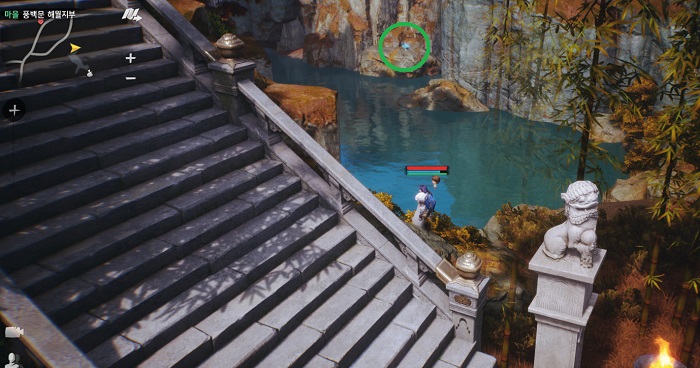 다음으로 풍백문 해월지부에서는 총 3곳에서 토모를 찾을 수 있는데, 풍백문 해월지부 서편에 위치한 작은 연못과 해당 연못의 폭포 위, 푸른색 빛이 나는 조형물 주변에서 찾으면 된다. 나머지 1곳의 토모는 '금경철문 강화 징인 및 제작 장인 NPC'가 위치한 곳 옆의 거대한 나무 쪽 벽면 너머에서 발견 가능하다.