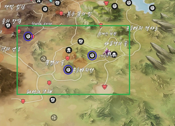 다음으로 솟을바위산의 토모는 파석의 갈채 및 꿈결의 숲에서 솟을바위산으로 가는 길목에 둘 모두 위치해 있는데, 지도의 위치만 잘 파악한다면 쉽게 발견 가능하다.