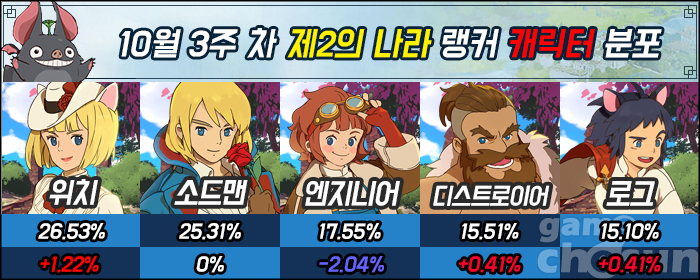 캐릭터 분포에선 위치가 다시 1위를 탈환하는 기염을 토했다. 잠시나마 소드맨에게 1위 자리를 뺏겼지만, 출시 초기부터 많은 유저에게 선호 직업으로 손꼽혔던 만큼 1위 탈환까지 2주도 걸리지 않았다.