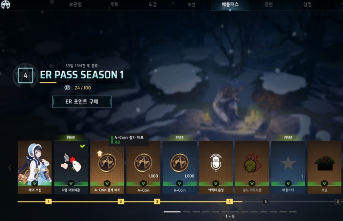 최근 게임들에서 많이 찾아볼 수 있는 ‘배틀패스’ 시스템을 구현한 ‘ER 패스’가 11월 11일 시즌 4 시작과 함께 공개된다.