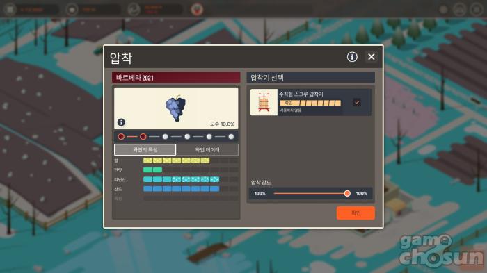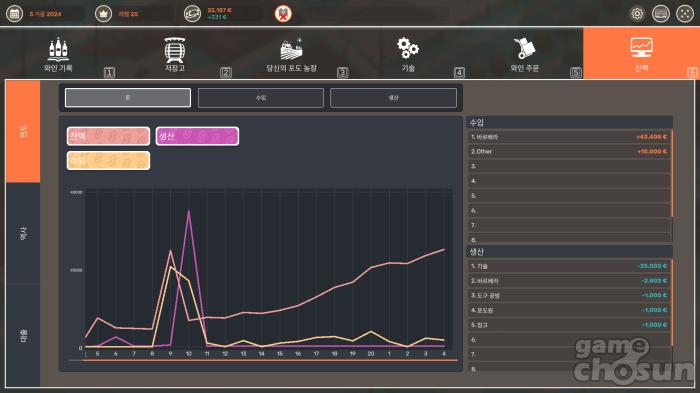 와인 생산 공정은 그래프를 통해 세밀하게 조절할 수 있다 = 게임조선 촬영