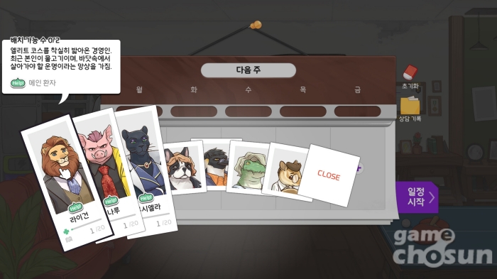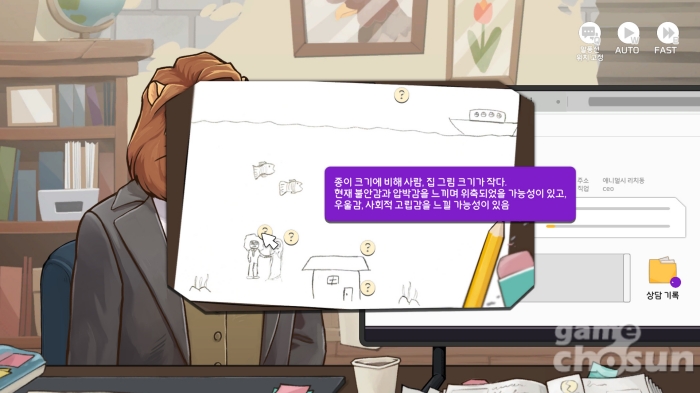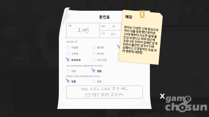 맨 처음 만나게 되면 간단한 정보가 담긴 문진표를 볼 수 있다 = 게임조선 촬영