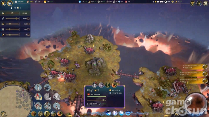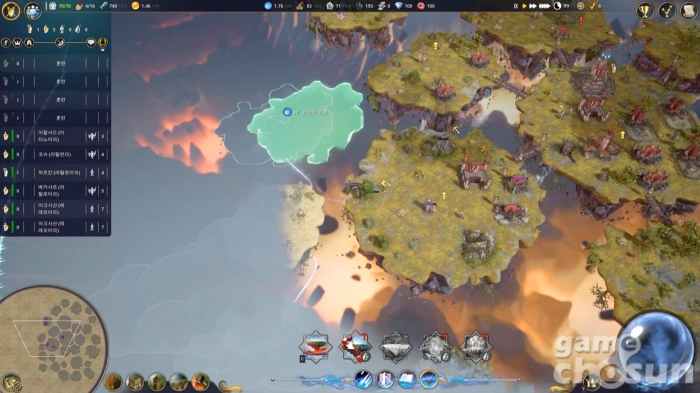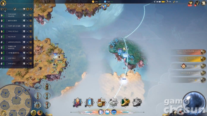 인접한 섬을 가까이 끌어당겨 영역을 확장해나갈 수 있다 = 게임조선 촬영