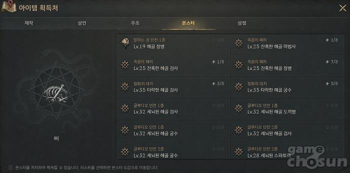 희귀 무기 제작 비법서 1개 광석 200개 온전한 뼈 5개 1,000,000 아데나 |