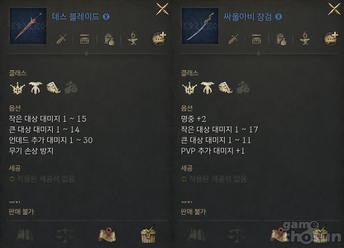 각 클래스별 추천 제작 희귀 무기도 알아보자. 기사와 군주의 경우에는 '데스 블레이드'를 추천하는데, 데스 블레이드는 언데드 추가 대미지와 함께 무기 손상 방지 옵션이 있기 때문에 사냥에서 활용도가 매우 높다. 현재 높은 가격대를 형성하고 있는 미스릴이 재료로 사용되지 않는 '싸울아비 장검'도 대안이 될 수 있으나, 싸울아비 장검의 경우에는 용도가 사냥이 아니라 PVP에 초점이 맞춰져 있기 때문에 많은 이용자가 성장 단계가 있는 현재 시점에서는 데스 블레이드가 효율이 더 좋다고 보여진다.