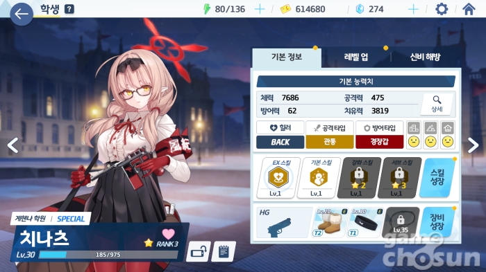 일반 스킬 또한 체력이 제일 낮은 아군 한 명의 회피율을 올려주는 효과인데 딜러에게 적용될 때는 낮은 체력 탓에 방어력을 올려주는 다른 힐러보다 치나츠의 회피율 지원이 더 효과적이다.