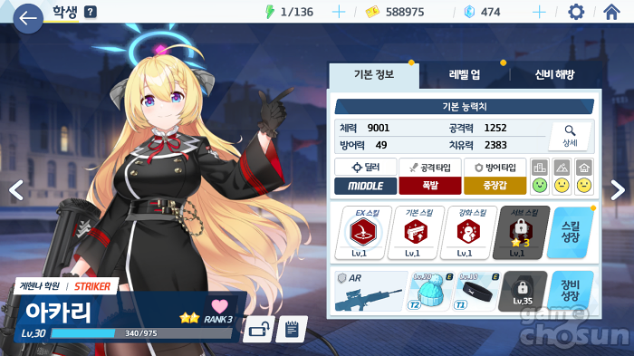 이 중 딜러 캐릭터의 경우 개별 캐릭터의 능력은 3성 보다 낮은 경우가 대부분이나 공격 타입별로 대미지가 네 배까지 차이나는 블루 아카이브 특성상 상성이 맞는 1성 2성 딜러가 3성 딜러를 이기는 구도가 많이 나온다. 이에 게임조선에서는 각 공격 타입별 육성해도 좋을 만한 1성 2성 딜러 캐릭터를 정리해 보았다.
