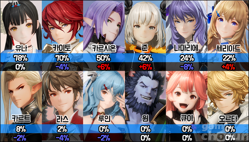 서버 통합으로부터 벌써 한 달이 지났다. 랭커들의 순위는 서버 통합 전후를 비교해도 큰 차이가 없지만, 여러 랭커가 한자리에 모인 영향으로 선호 캐릭터와 인기 팀엔 적지 않은 영향을 미치고 있다. 특히 카이토와 유나, 카르시온, 준의 경우 사실상 랭커들의 핵심 캐릭터로 고정되는 추세다.