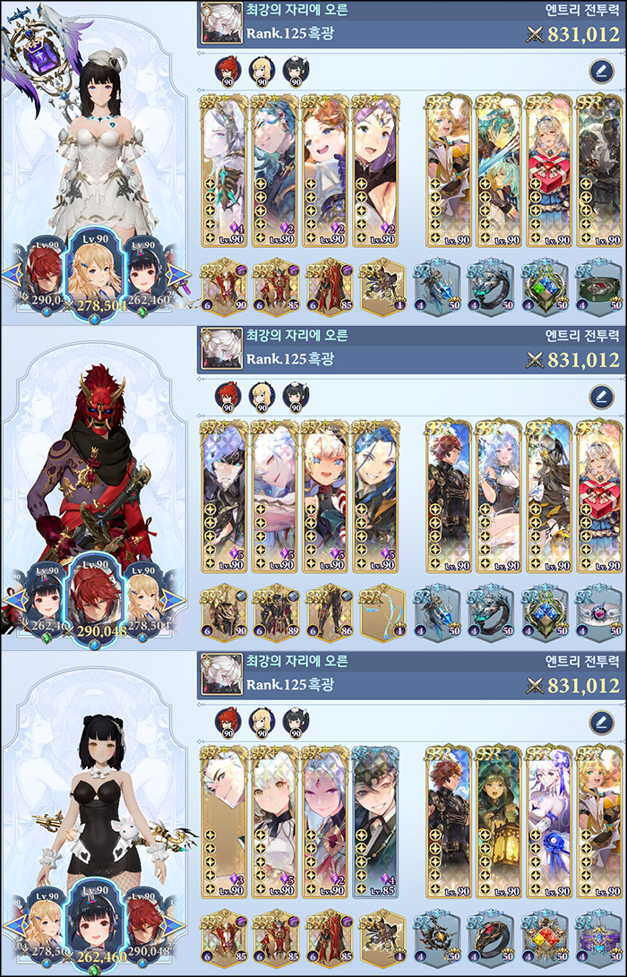 우선, 순위보다 10위권 내 랭커들의 결투장 엔트리를 유심히 살펴보자. 그렇다. 무려 10명 중 9명이 카이토를 사용하고 있다. 현재 결투장에서 카이토릐 성능이 워낙 뛰어나서 최상위권 유저들은 대부분 전열 탱커로 카이토를 기용하고 있으며, 카이토를 기용하지 않을 땐 카르시온이나 카르트를 사용하고 있다.