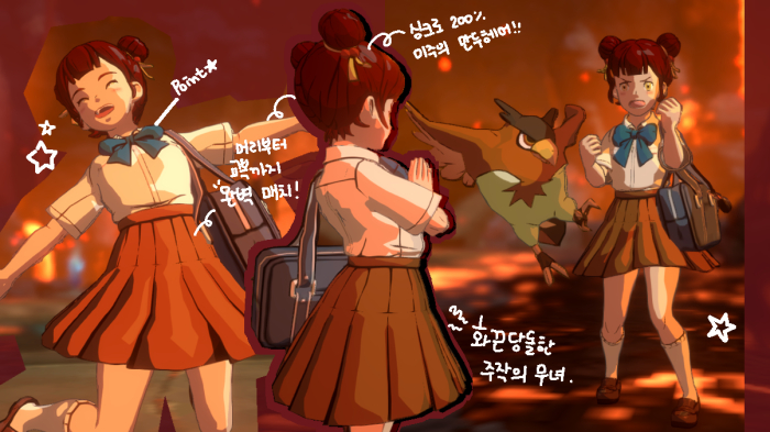 이클레시아: 저는 제2의 나라를 플레이할 때 주로 사진 찍으며 재미를 느끼는 유저고, 평상시 많은 사진을 찍으며, 좀 더 ‘예쁘게’, ‘잘’ 보이도록 찍는 노하우 쌓였던 점도 한몫했다고 봅니다. 그리하여 하루는 다른 분들의 게시물들을 보며 제가 보여드릴 콘셉트를 생각했고, 또 하루는 필요한 사진을 찍거나 그동안 찍었던 모든 사진들을 모아서 정리했고, 마지막 하루는 사진들을 편집하며 총 3일을 작업한 셈이 되었네요. 편집할 때는 커버, 상세모습, 콘셉트 샷으로 구성해 각각의 스타일이 확실하게 보이도록 배치했습니다!