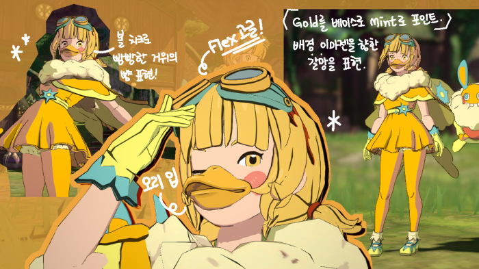 이클레시아: 엔지니어의 코스튬은 대부분 가지고 있습니다. 앞으로도 늘어날 예정이죠! 가장 아끼는 코스튬은 마지르의 행운 냄비에서 나오는 '모험가 고글'입니다. 거위 콘셉트에서 머리에 쓰고 있던 그 코스튬인데 희소성도 있고, 어떤 옷에든지 어울리는 효자 패션템입니다!