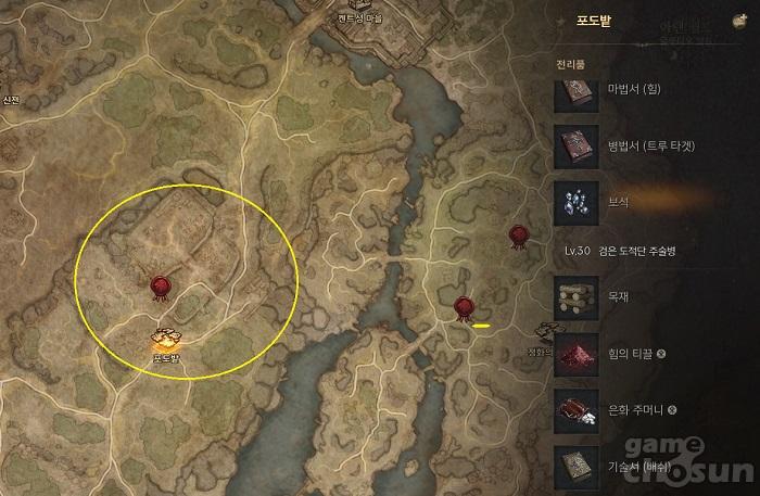 - 글루디오 (검은 도적단 전투병, 농부 및 화전민 좀비)
