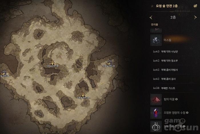 - 요정 숲 던전 1, 2, 3층 (부패 좀비, 부패 악마, 부패한 가스트, 오염된 아라크네)