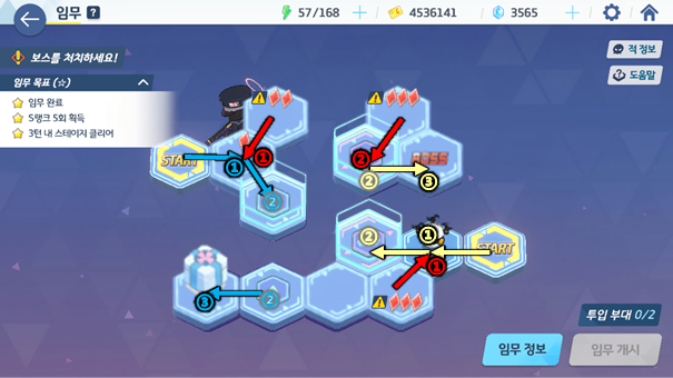 스테이지 3별과 청휘석을 동시에 챙기려면 두 번째 분대까지 전투해야 하니 도전 과제 쪽에 초점을 잡고 스테이지 3별까지 클리어한 뒤 나중에 청휘석을 재량껏 챙기는 쪽이 좋다.