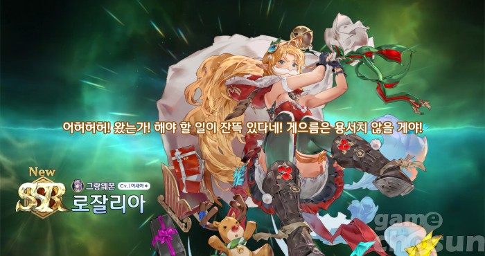 이번 신규 그랑웨폰은 R등급이었던 동명의 그랑웨폰을 크리스마스 테마에 맞춰 재해석한 SSR등급 그랑웨폰이다. 특히 아군 보조 역할에 특화됐던 로잘리아는 사용자인 '나마리에' 단독 강화 및 공격형 그랑웨폰으로 변모하며 원본과 전혀 다른 방식의 사용법을 보여준다.