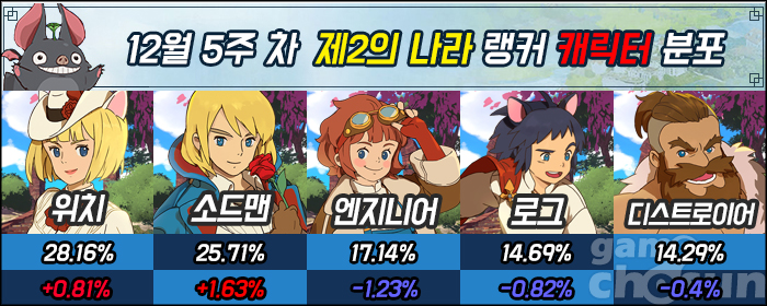 반면 엔지니어, 로그, 디스트로이어의 지분은 이번에도 50%를 넘기지 못했다. 특히 엔지니어는 1.23%가 하락하며 또다시 20% 고지를 넘지 못했다. 디스트로이어 역시 지난 랭킹에서 로그에게 빼앗긴 4위 자리를 되찾지 못하며 아쉽게 한 해를 마무리하게 됐다.