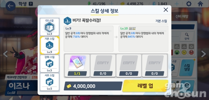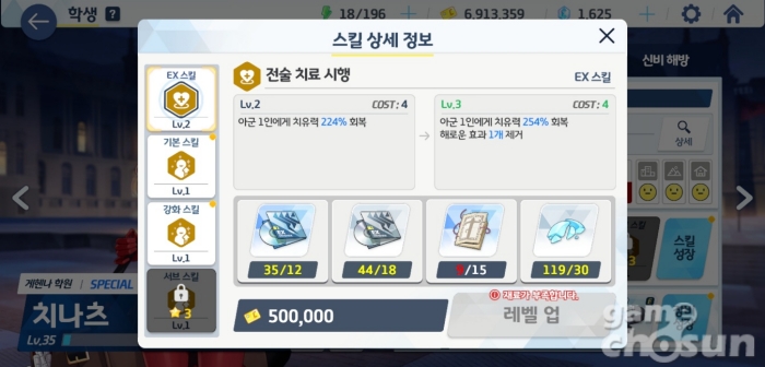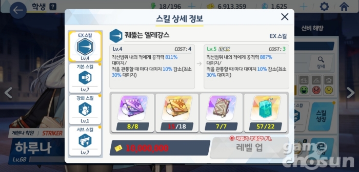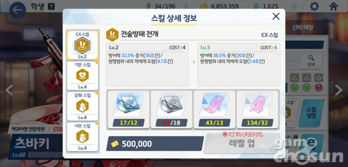 스킬 레벨업마다 각자 지정된 오파츠를 사용 = 게임조선 촬영