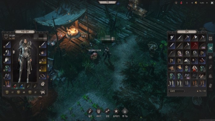 캐릭터 장비 착용 정보 및 장비 인벤토리 확인 창 = 라인게임즈 제공