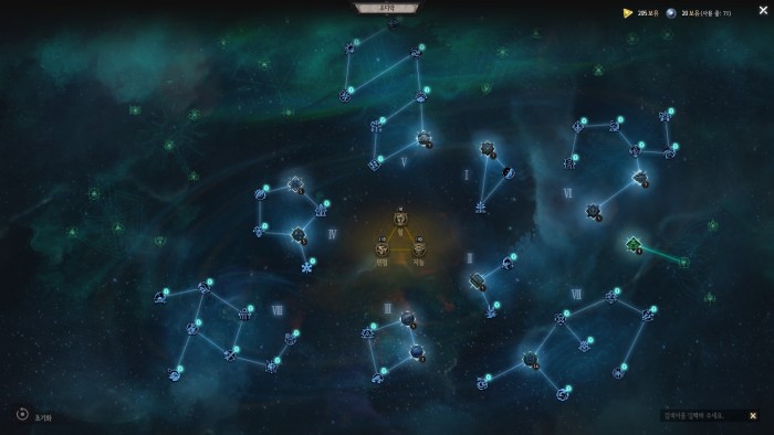 조디악 화면 구성, 가운데 힘, 민첩, 지능 및 외곽 별자리 모양으로 구성된 특성 포인트로 구분된다 = 라인게임즈 제공