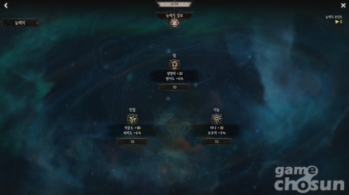 공격력에 관여하지 않는 기초 스탯 = 게임조선 촬영