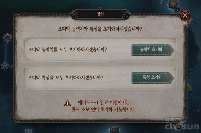 메인 에피소드-1, 즉 액트5까지 완료하기 이전까지는 무료로 초기화가 가능하며, 이후부터는 일정 골드를 소모해야한다.