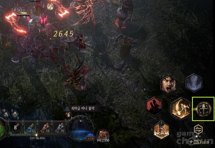 모바일 기기에서는 기본 공격 우측 검 모양 버튼을 누르면 스마트 컨트롤이 활성화 된다 = 게임조선 촬영