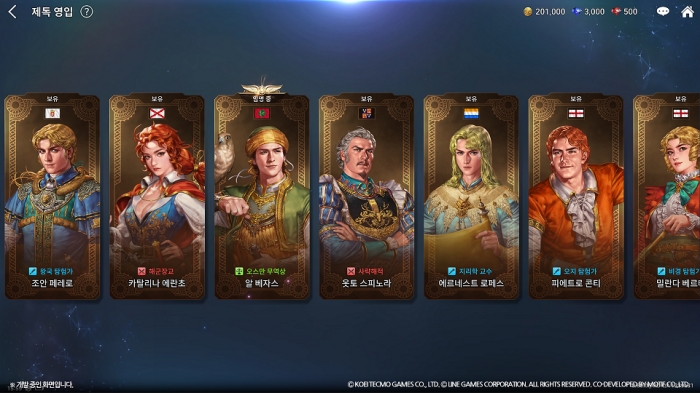 ‘대항해시대 오리진’에서는 원작 ‘대항해시대II’에 등장한 주요 캐릭터를 비롯해 다양한 신규 캐릭터들을 3D그래픽과 세련된 일러스트레이션으로 재창조해 플레이에 대한 몰입감을 높였다.