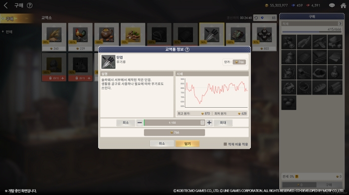 교역품의 가격은 각 지역의 역사적, 문화적, 교역 거리 등의 가치에 의해 가격이 결정되며 이를 이용해 손해를 볼 수도, 이윤을 남길 수 있다.