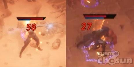 같은 피해여도 화염 저항력에 따라 확연히 다른 대미지 = 게임조선 촬영