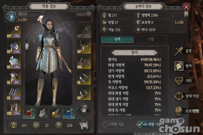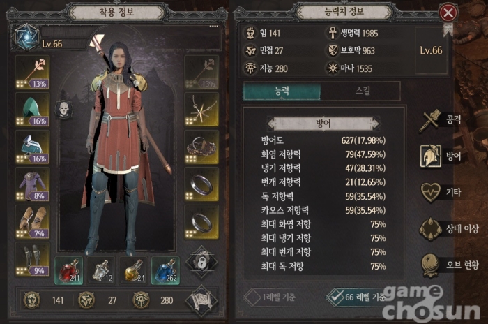 정석대로 지능을 투자하고 보호막 방어구를 착용하면 방어도 고려시 3600 가량의 피해를 막을 수 있다 = 게임조선 촬영