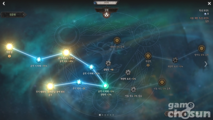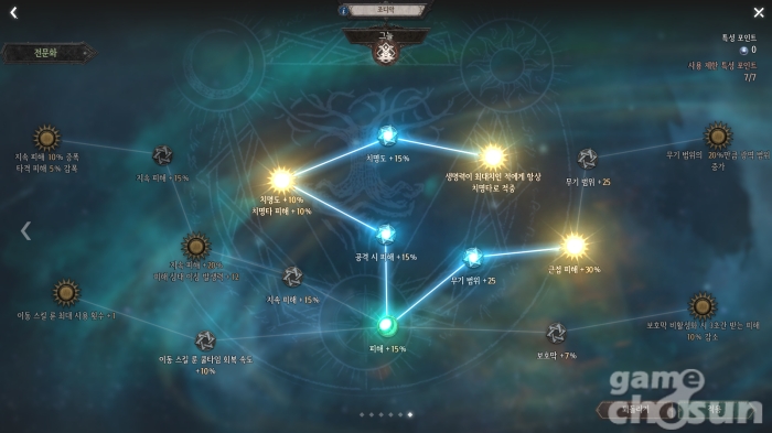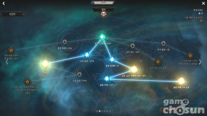 전문화 2단계에선 이런 전투 스타일을 보조해 준다. '집중'을 선택해 막기 효과를 강화하거나 '강인함'을 선택해 방어도를 대폭 늘리고 기절 면역까지 받을 수 있다. 반대로 자신의 기절 발생력을 증가시키고 기절 중인 적에게 추가 피해를 입히거나 함성 스킬 효과 중인 적에게 추가 피해를 주는 공격적인 스타일로도 투자해 줄 수 있다.