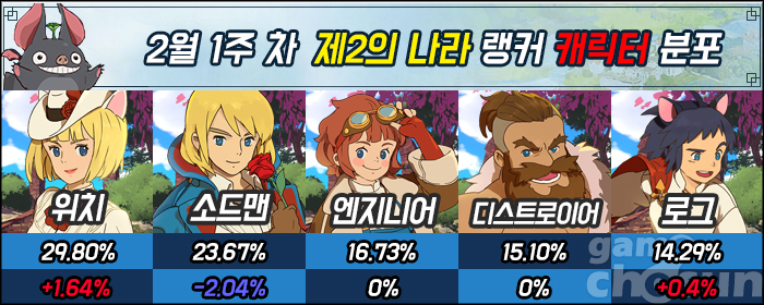랭커들의 캐릭터 분포도 심상치 않다. 1위를 지키고 있는 위치가 점유율 30% 돌파를 눈앞에 두고 있기 때문이다. 과연 위치가 출시 후 처음으로 랭커 점유율 30%를 돌파할 직업이 될 수 있을지 관심이 모이고 있다.