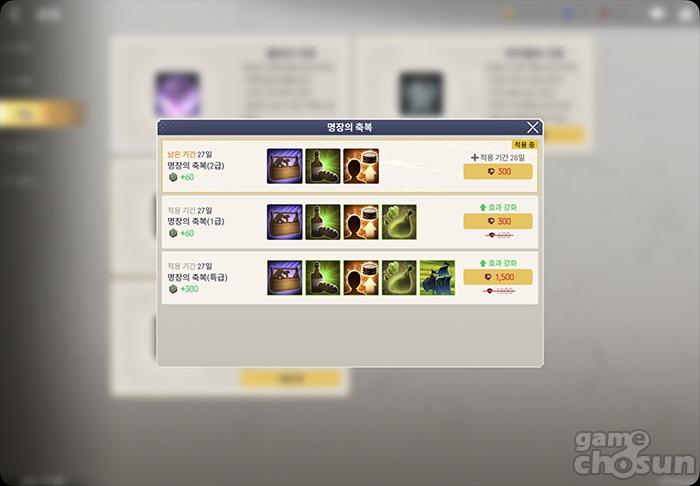 또한, 기간제 버프로는 '엘모의 가호'와 '명장의 축복', '라파엘의 가호', '미카엘의 가호' 4종으로 각각의 가호는 특급부터 2급까지 나누어져 있어 자신의 과금 수준이나 필요한 버프에 따라 체계적인 구매가 가능하도록 만들었다. 덕분에 자신의 플레이 스타일에 맞지 않는 버프에 과금을 줄일 수 있어 상당히 유저 친화적인 모습을 보여줬다.